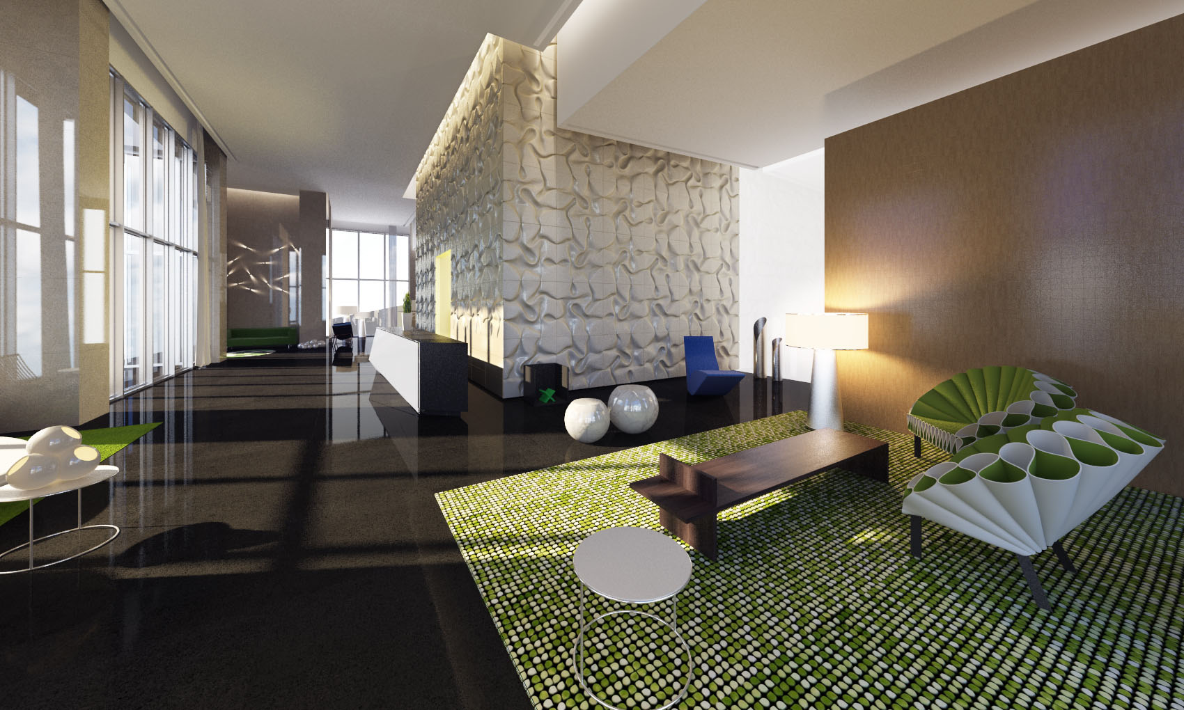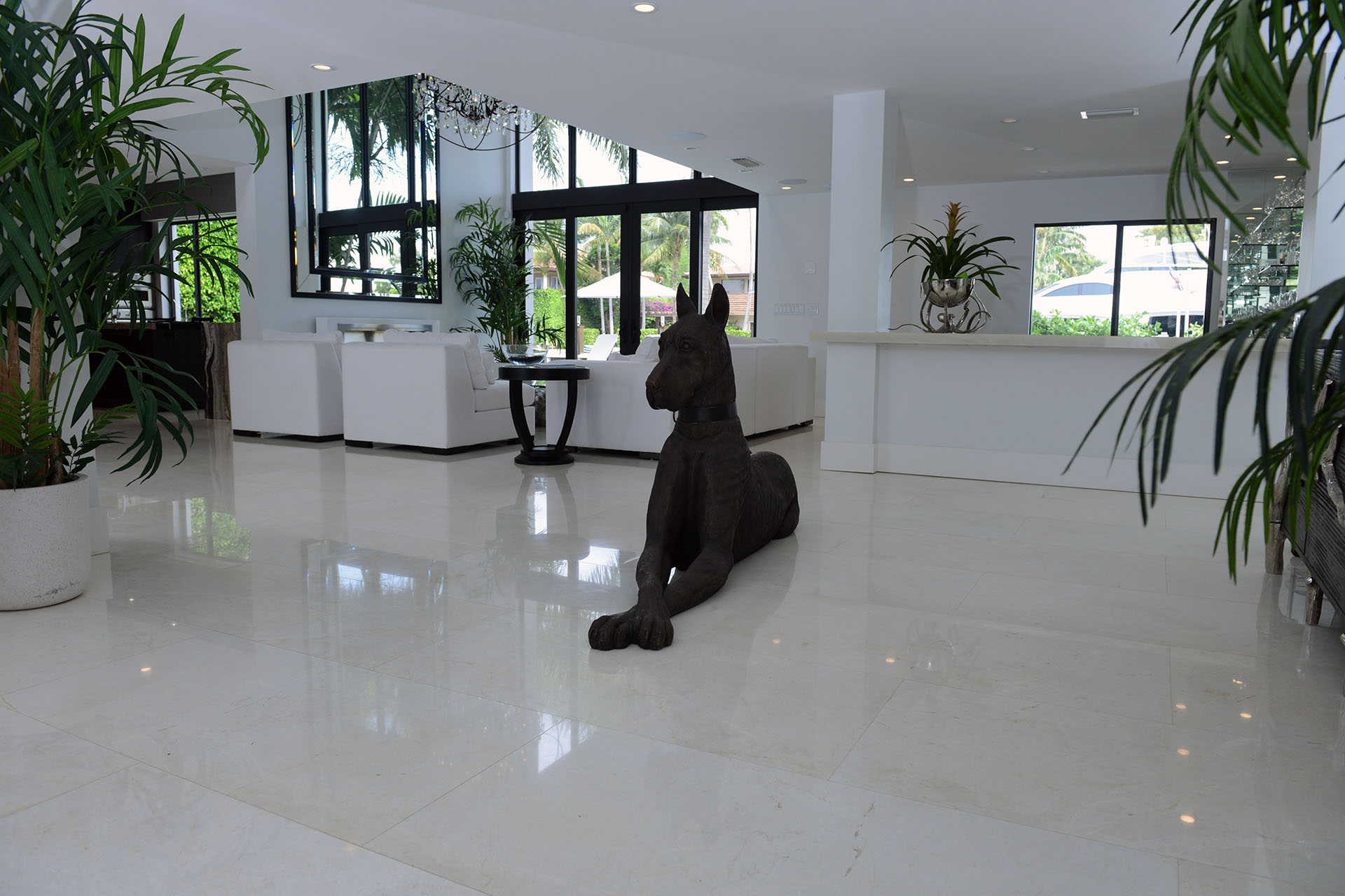 The polished marble flooring provides just the perfect backdrop to the interior design of the space by using contrast in both colors and scale.