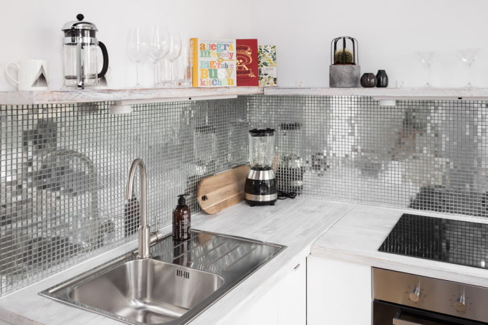 Thanks to the silver mosaic, you can not only finish the walls, floor, shower and other elements, but also significantly transform the room and visually change its spatial perception.